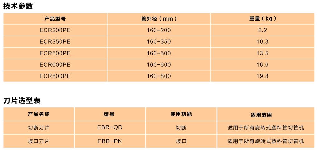 自動管子割刀常見的有爬管式管道切割坡口機(jī)和分瓣式切割坡口機(jī)。自動管子割刀型號尺寸表如下: