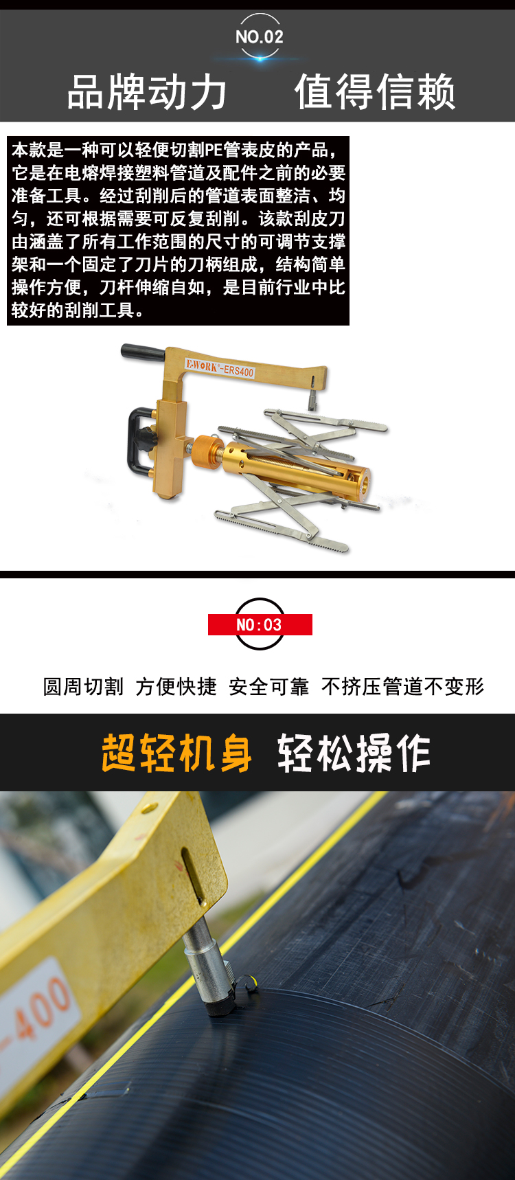 易沃克旋轉(zhuǎn)式PE管刮皮刀ERS400 去氧化層刮刀