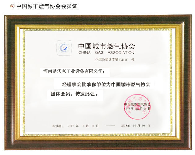 熱烈慶祝河南易沃克成為中國城市燃?xì)鈪f(xié)會會員
