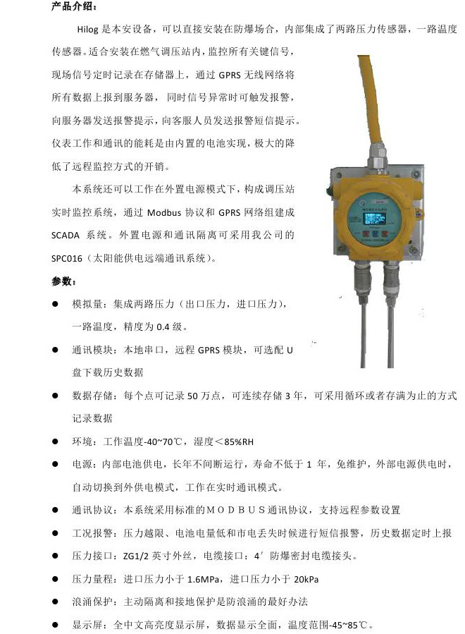 Hilog調(diào)壓站監(jiān)控終端(GPRS遠(yuǎn)傳)