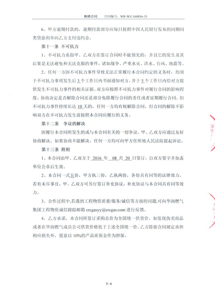 2016年武鋼華潤燃?xì)猓ㄎ錆h)有限公司