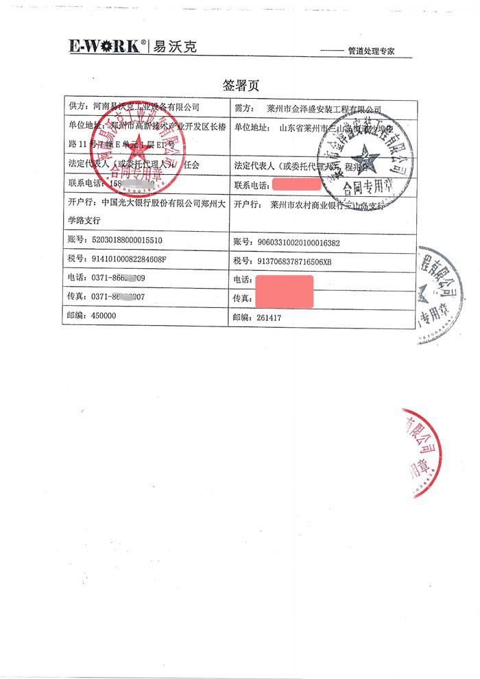 2016年萊州市金澤盛安裝工程有限公司合作業(yè)績