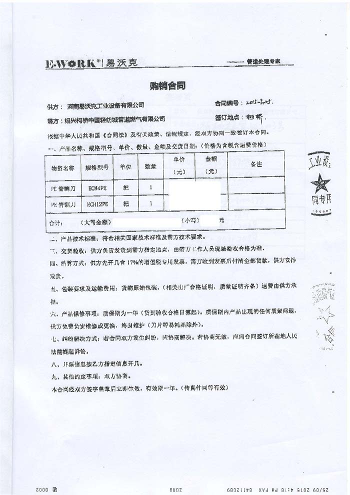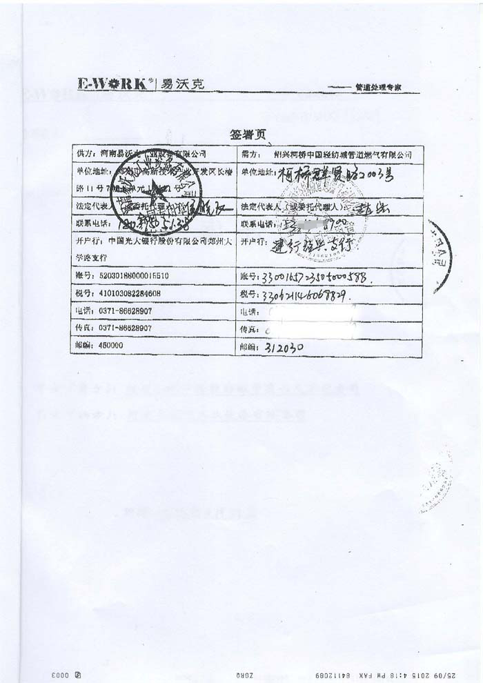2015年浙江紹興柯橋中國輕紡城管道燃氣有限公司合作業(yè)績